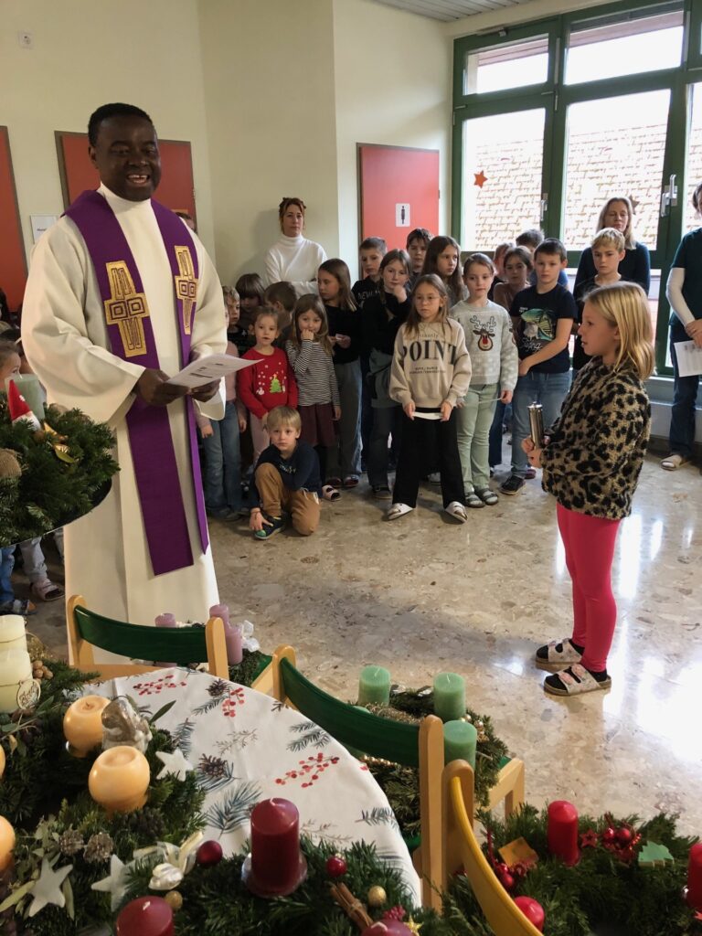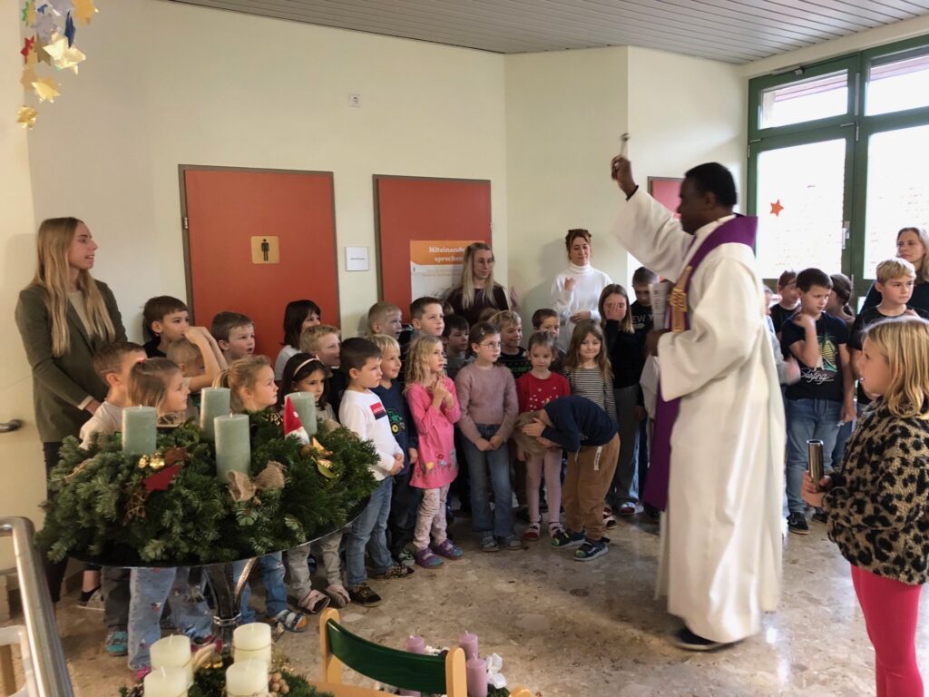 Zu beginn des Advents wurden alle Adventkränze unserer Schule von Pfarrer Emeka gesegnet. In einer kleinen Adventfeierstunde haben wir uns mit Liedern und Gedichten auf die beginnende Adventzeit eingestimmt.